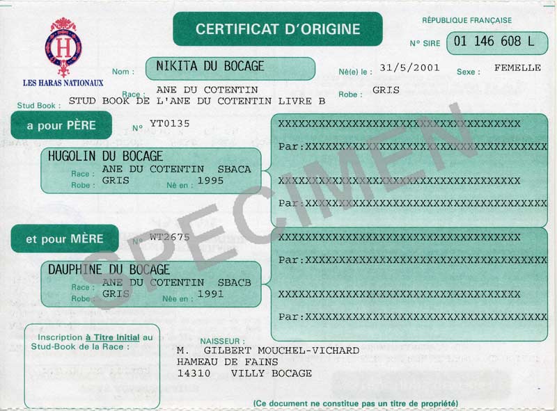 an identification card with the appelation "Cotentin donkey