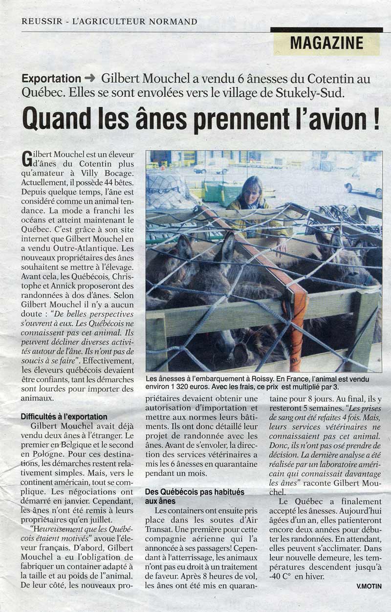 Presse de la Manche [2] , 4 Juillet 2005. Envoi de 6 ânes au Canada.