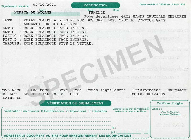 certificate of the "foal's description" and you will receive