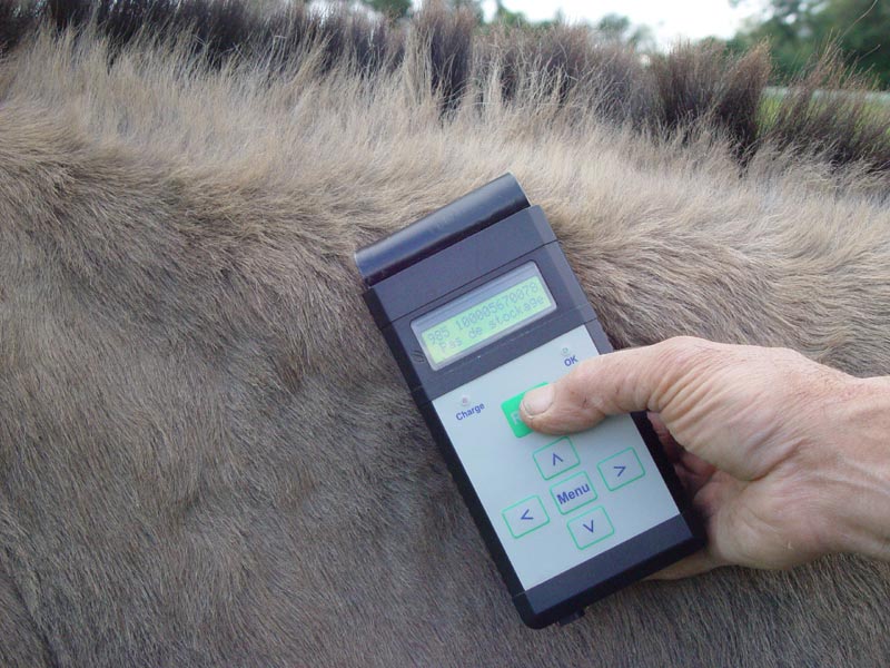 of the donkey's neck. A transponder is a tiny microchip containing