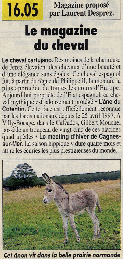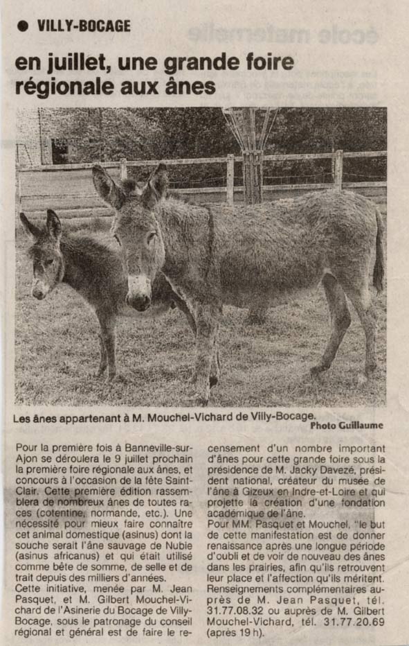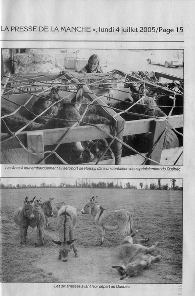Presse de la Manche [2] , July 4th, 2005. 6 Donkeys are sent to Canada. (french)